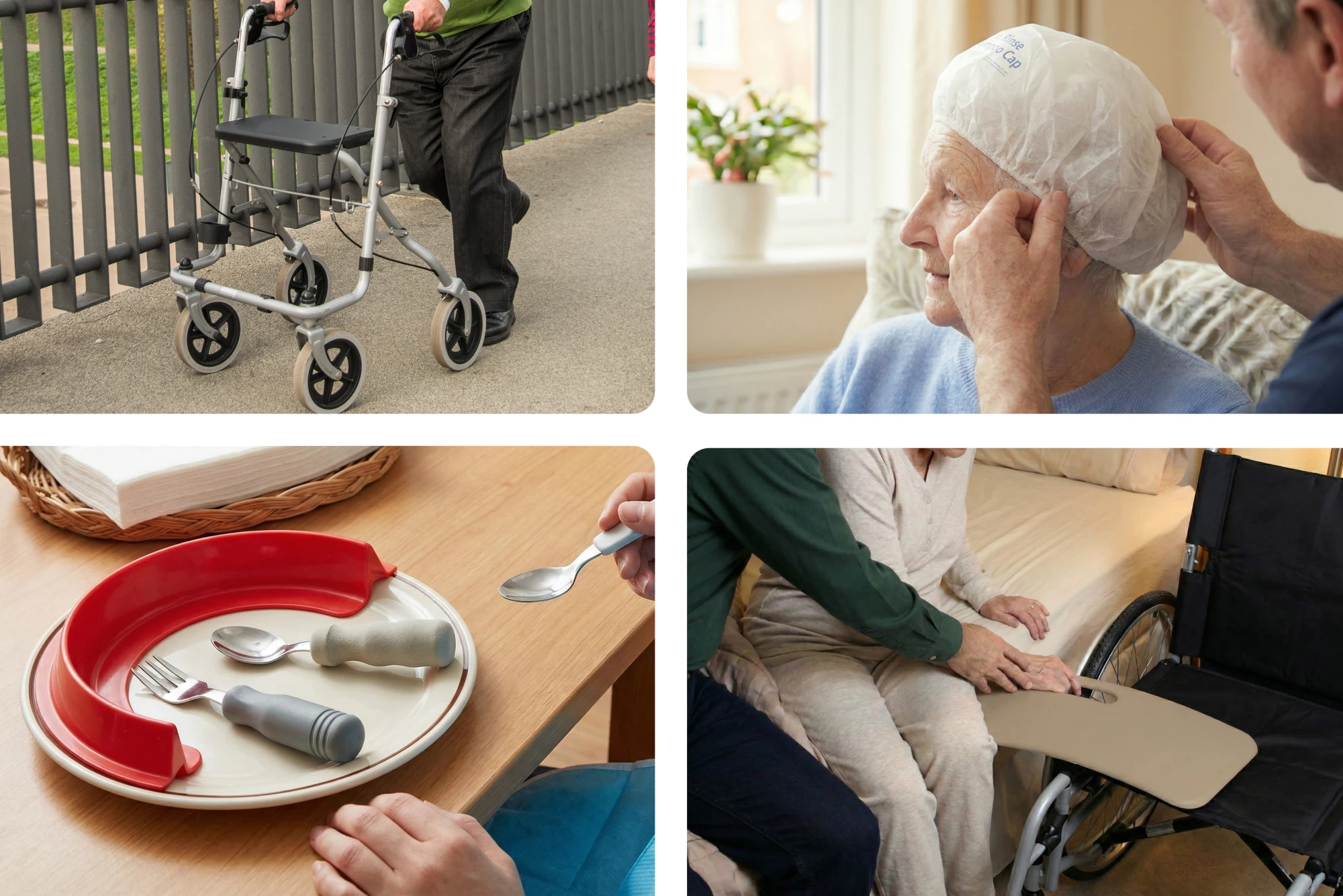 Pesemistoiminguteks voodis olles on head abilised loputamist mitte vajav juustepesumüts või täispuhutav peapesuvann, kust vesi voolikuga ämbrisse juhitakse. Ratastega poti- ja dušitool vähendab oluliselt abistaja füüsilist koormust.
